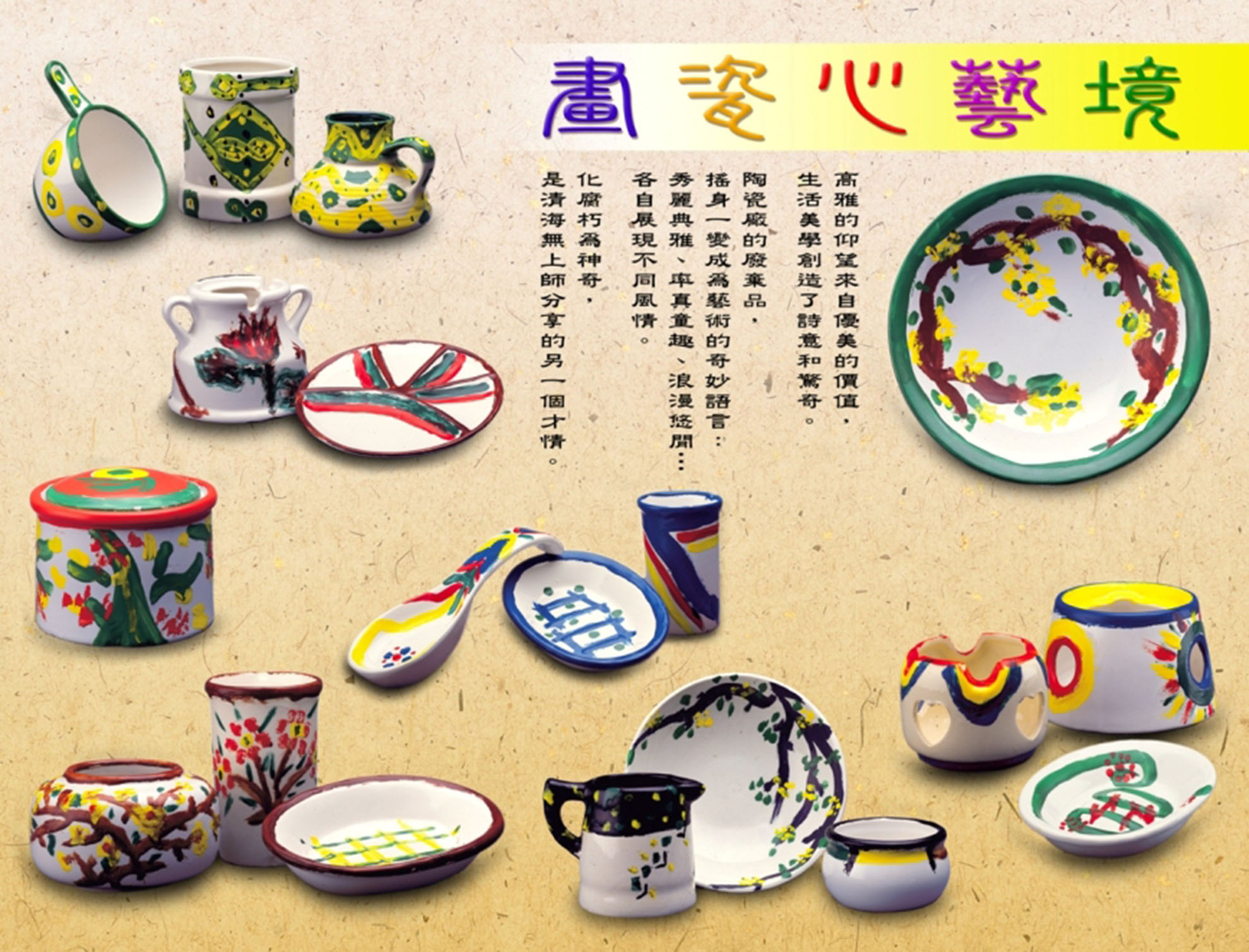 化腐朽為神奇,是清海無上師的另一項才情,在無上師一一細心妝點下,陶瓷廠丟棄不用的廢品,頓時搖身一變,有的秀麗典雅,有些率真童趣,各自展現不同風情,重現圓滿與美好的內在品質。