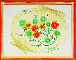 精緻生活 畫面的豐富性像是生活態度的细心肯定, 圓滿的背盤有上下的陰陽托把, 紅花豐盛出生命始末各種過程, 很細心地在綠葉陪襯下更顯精緻, 原來上天安排是如此的精彩雅緻!