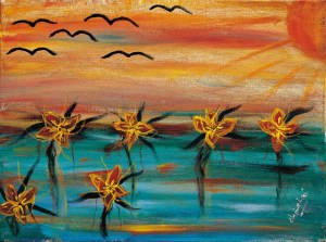 海水清淨通透,流深而靜謐,祥和而無波,滌淨一切塵埃。朵朵蓮花自那淨海深處中升起,美麗而超絕塵世。此景只應天上有,故名「天堂花」。