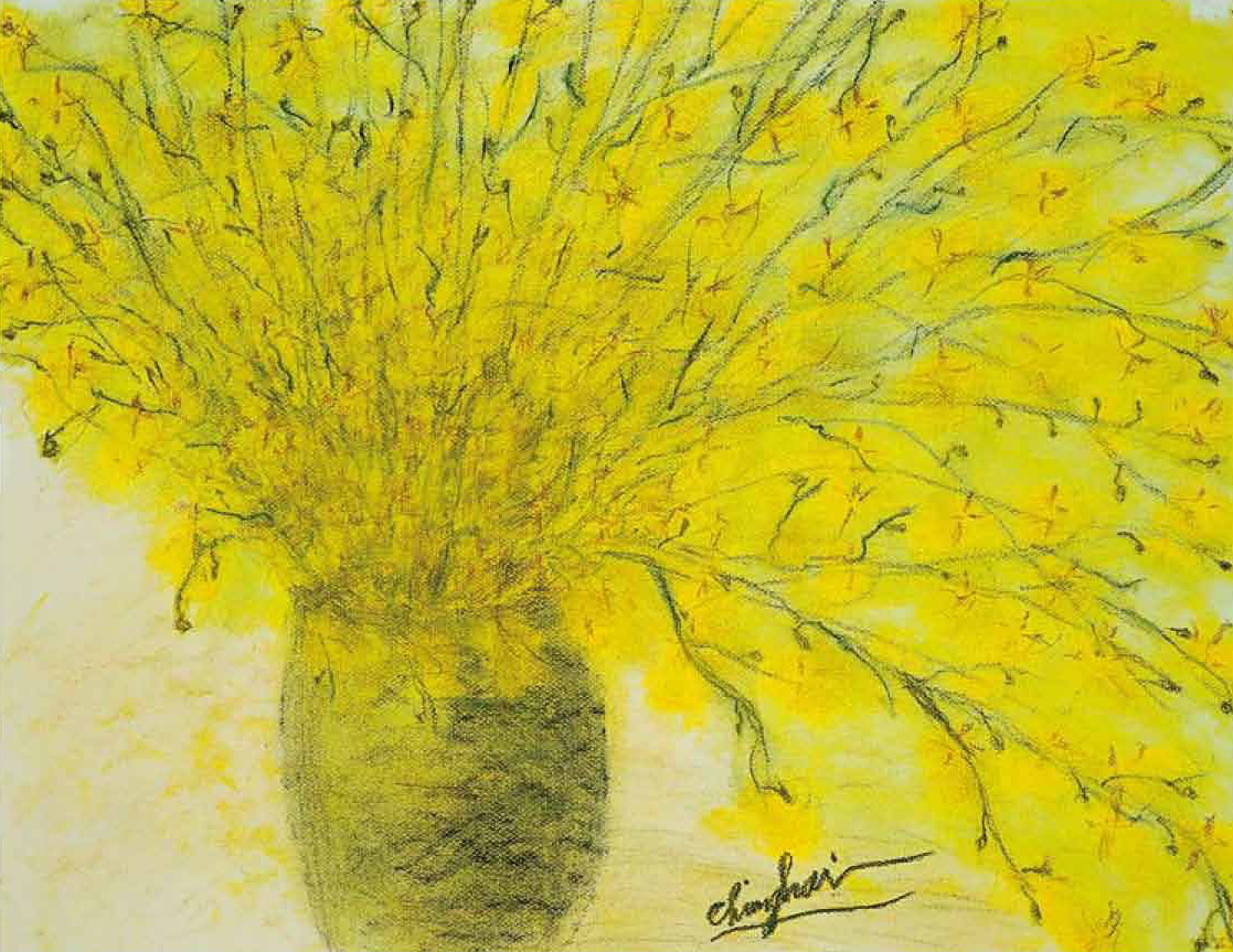 地點︰福爾摩沙苗栗西湖 日期︰1994.5 規格︰50.5×65公分 顏料︰粉彩畫 【文心蘭(俗稱跳舞蘭)】 Oncidium Pulvinatum (Dancing Orchids)