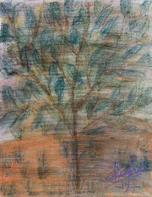 玉蘭樹上為何不見玉蘭花?畫家笑說︰「一陣強風吹來,花都被颳掉了!讓我們想像明年春天花再開好了!」